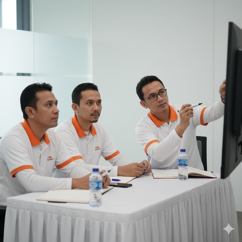 Latihan langsung, simulasi memimpin tim, dan case handling nyata.